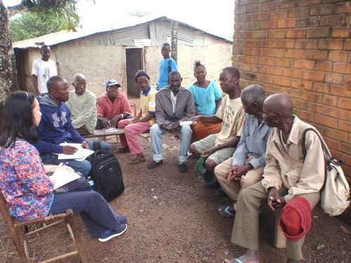 リベリアで手掘りダイヤモンド採掘者との会合の様子