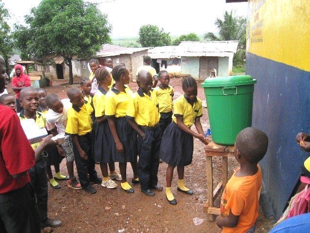 よしリベリアだ!と思って帰国した直後、リベリアをはじめとする西アフリカでエボラ出血熱が流行し始めました。何万人もの人々が亡くなるという非常事態に私達も危機感を覚え、人々の命を守るため緊急支援活動を行うことにしました。人が密集している首都の学校には、国際機関の支援で体温計や手洗い設備が入っているはずでしたが、小さな学校や地域住民が設置した学校には国際機関の支援は全く入っていなかったのです。私達は国際機関の支援から漏れている学校を対象に、非接触体温計、手洗い用の水桶、せっけん等を寄付し、手洗い方法を説明しました(リベリアの人々には手を洗う習慣がないのです)。また、エボラ出血熱の正しい知識を住民に啓発していたボランティアグループを支援し、より多くの人々が正しい知識(エボラは悪魔のしわざではない、予防する方法等)の啓発を推進しました。(当時ご協力頂いたみなさま、ありがとうございました!)