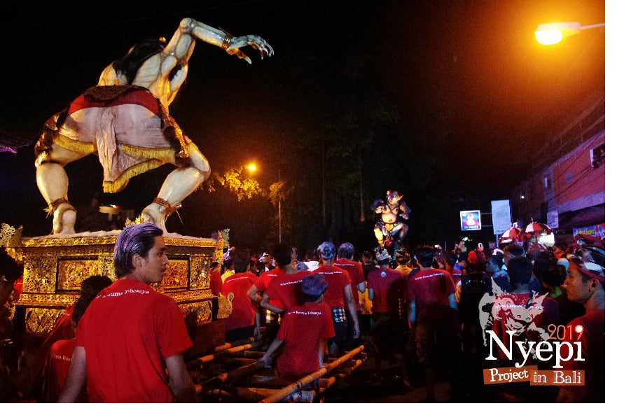 ニュピというのはバリで使われている二つの暦のひとつ、太陰暦に基づいたサカ暦の新年です。1年に一度訪れるこの日の前夜には街中から悪霊を追い出すために、オゴオゴと呼ばれる大きな悪霊を模した巨大な人形を担いで村人が町を練り歩きます。