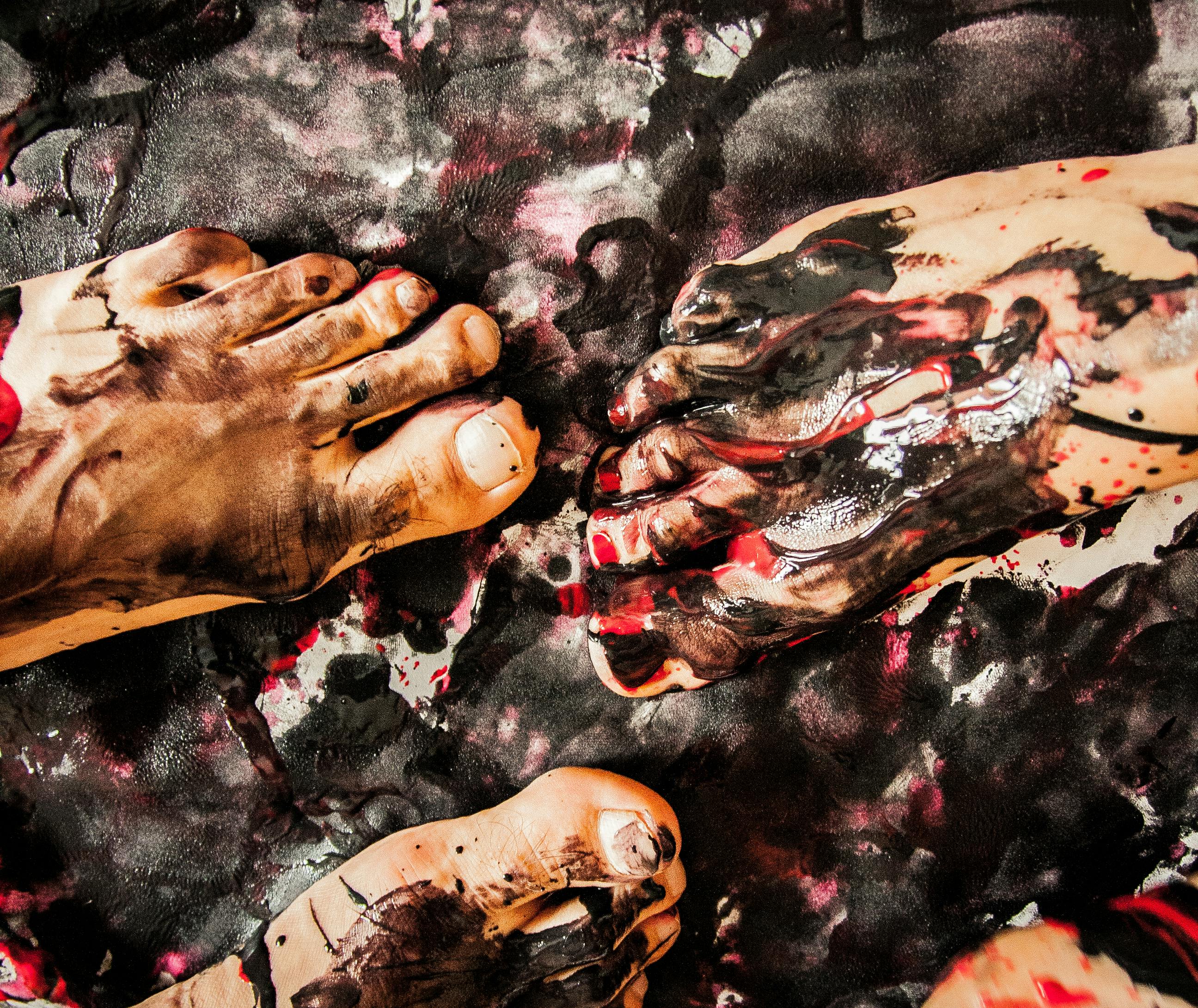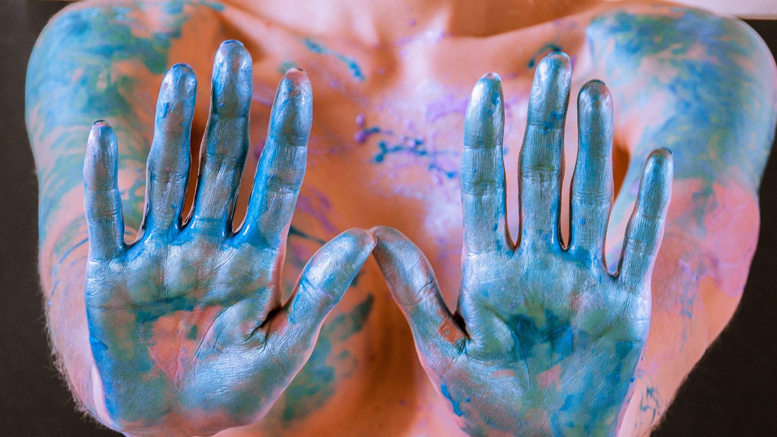 このアートは、筆の代わりに、裸で体や手を用いて描きます。私と一緒に撮影する友人の様々な感情、温度感に影響されると思います。そして、一回勝負です。ちなみに私はモデルでもなく、スタイルも中の下です。
