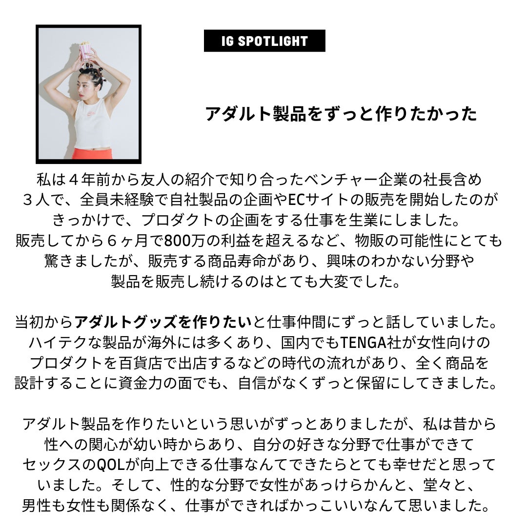 アダルト製品をずっと作りたいと5年前から言って来ましたが、実際に自分がこのような形でプロダクトを作るとは思っていませんでした。