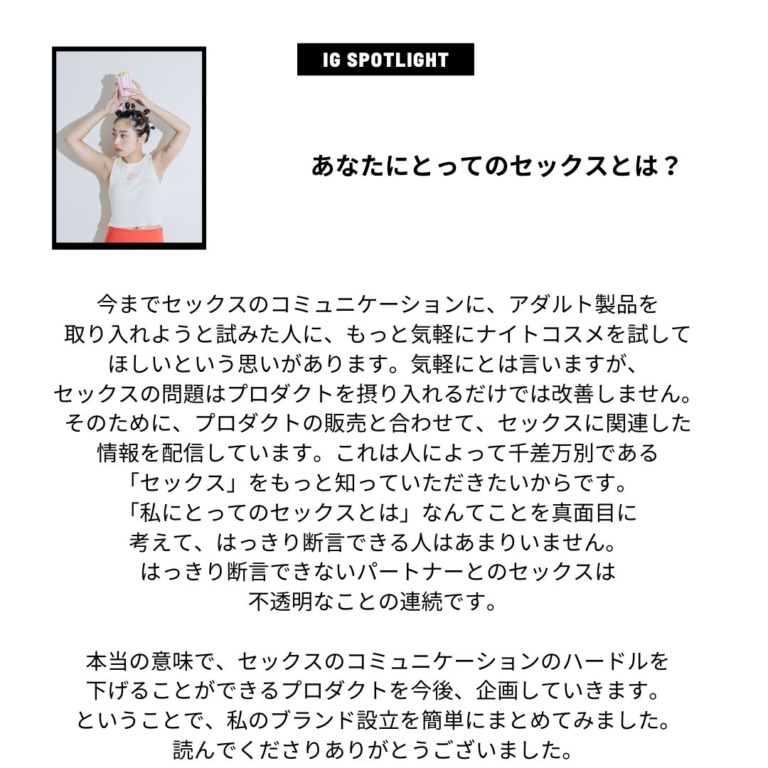 私が準備をしてきたプロダクトの予約ページが本日から公開されました。これからはプロダクトでもっとダイレクトに、パートナーとの性のコミュニケーションをポジティブなものに変換したいと思い、ブランド、法人を設立いたしました。