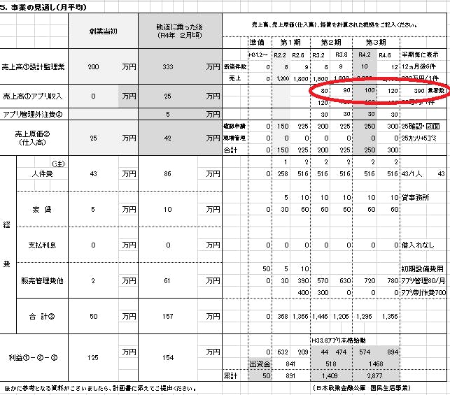 *下表・創業計画書内の赤枠で示す。