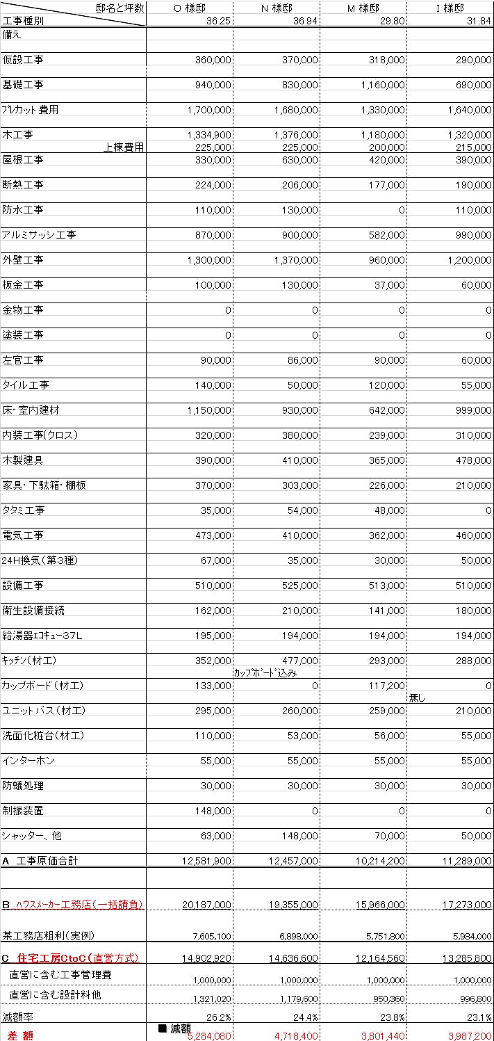 建て方が一式請負業ではないので上乗せ粗利益を25%~45%も頂かずに建築を実行するという意味です。