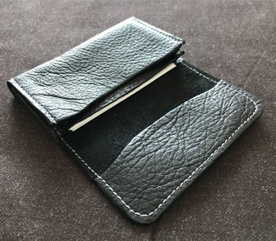 クッタリした柔らかさと軽さが特徴です。動画では20枚の名刺を入れました。