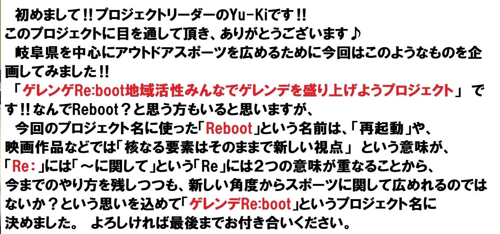 このプロジェクトでたくさんの方にアウトドアを知ってもらい岐阜を盛り上げながら、