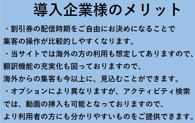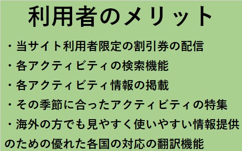 掲載している場所以外では、ご利用することができませんであらかじめご了承ください。又、掲載アクティビティは今後順次追加掲載して参ります。