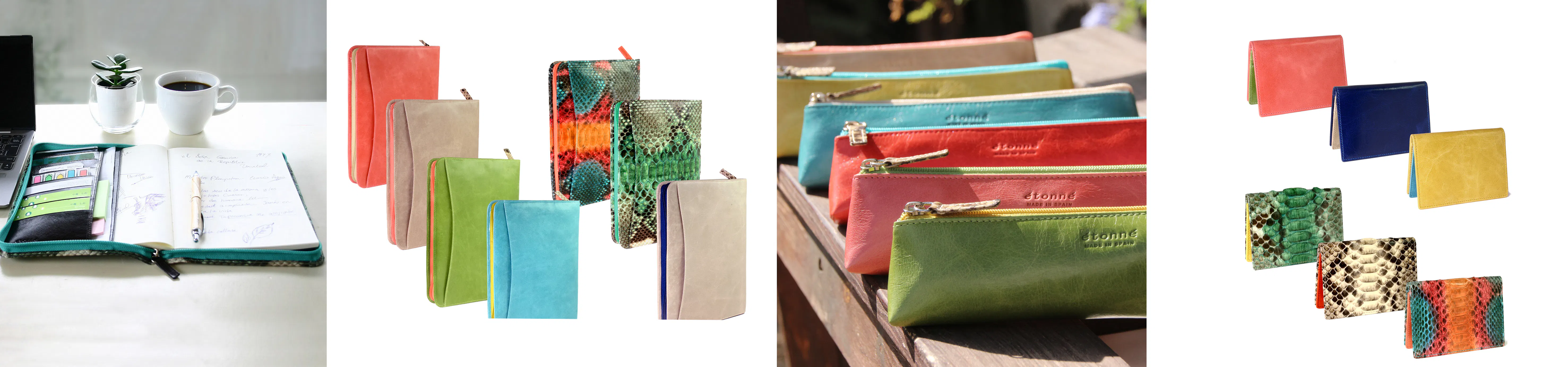 茶色い革、黒い革は日本ではよく見ます。革らしくて重厚感もあってとっても素敵です。でも、重い…。クライ…。エトネのデザインは、女性ならではの観点から「持っているだけでワクワクする」をモットーに、上品でカラフルな色合いに加え、使いやすくそして何よりも「軽い」ことにこだわりました。