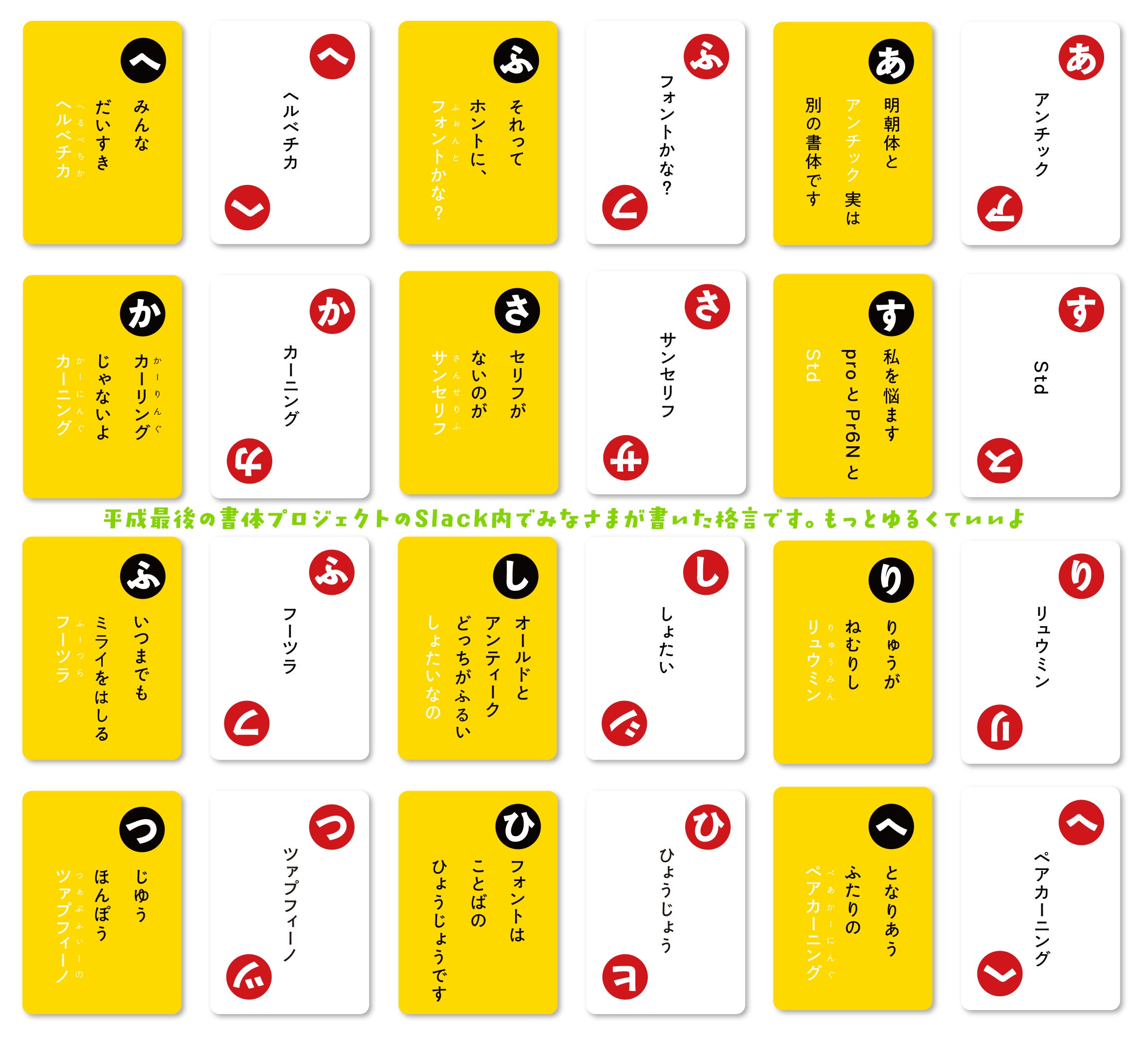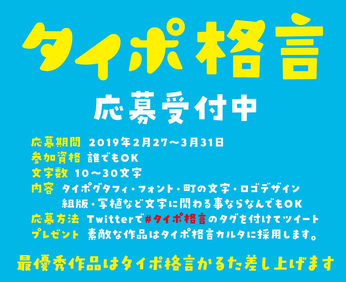 Twitterでは平成最後のフォントかるたに使う格言を募集しています。@flopdesign