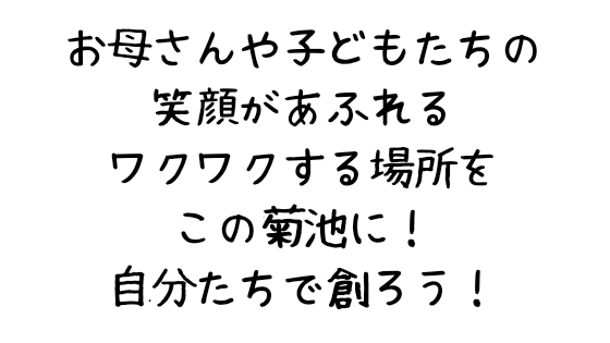 普段は主婦であり母である私たちですが、地元の子ども達やお母さん達に喜んでもらいたい!家族で楽しい思い出を作ってもらいたい!そんな願いを込めて、この菊池市で