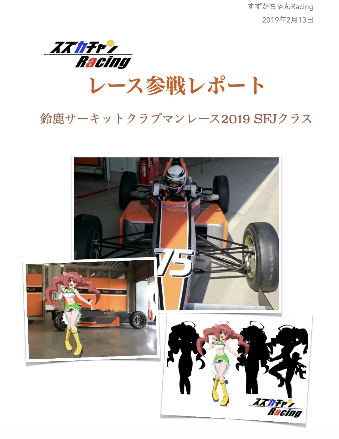 の練習走行、予選、決勝の状況をまとめたレポートで挿絵などですずかちゃんの各キャラが