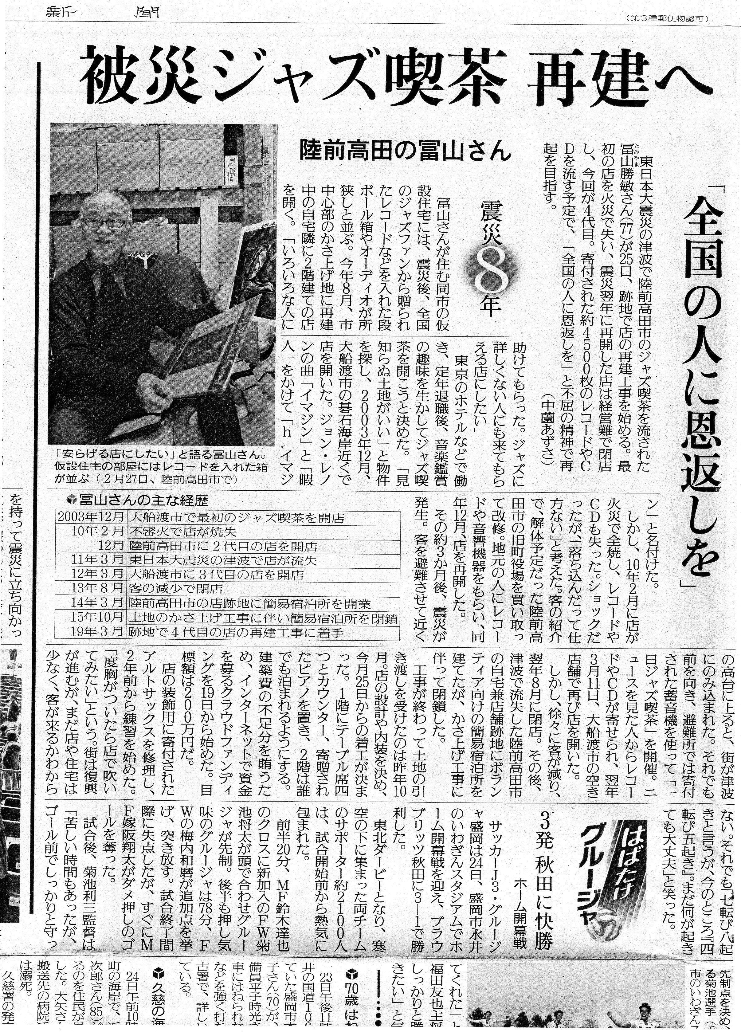 h.イマジンⅡ(陸前高田市)大津波被災後とh.イマジンⅢ(大船渡市)開業当時取材男性記者が、「苦節8年そろそろh.イマジンⅣ(陸前高田市)再々再復活の噂?」を後輩女性記者に託し取材に陸前高田市米崎町仮設住宅まで遠路はるばるご来訪いただきました。