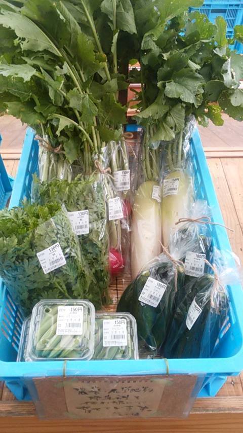 手書きポップ「無農薬栽培」アピール自己主張!色とりどり&スタイルも自己主張個性発揮の野菜たち!次から次へと育ち始めると始まる収穫祭踊り!それは!収穫するのに「天手古舞」\(^^;)/