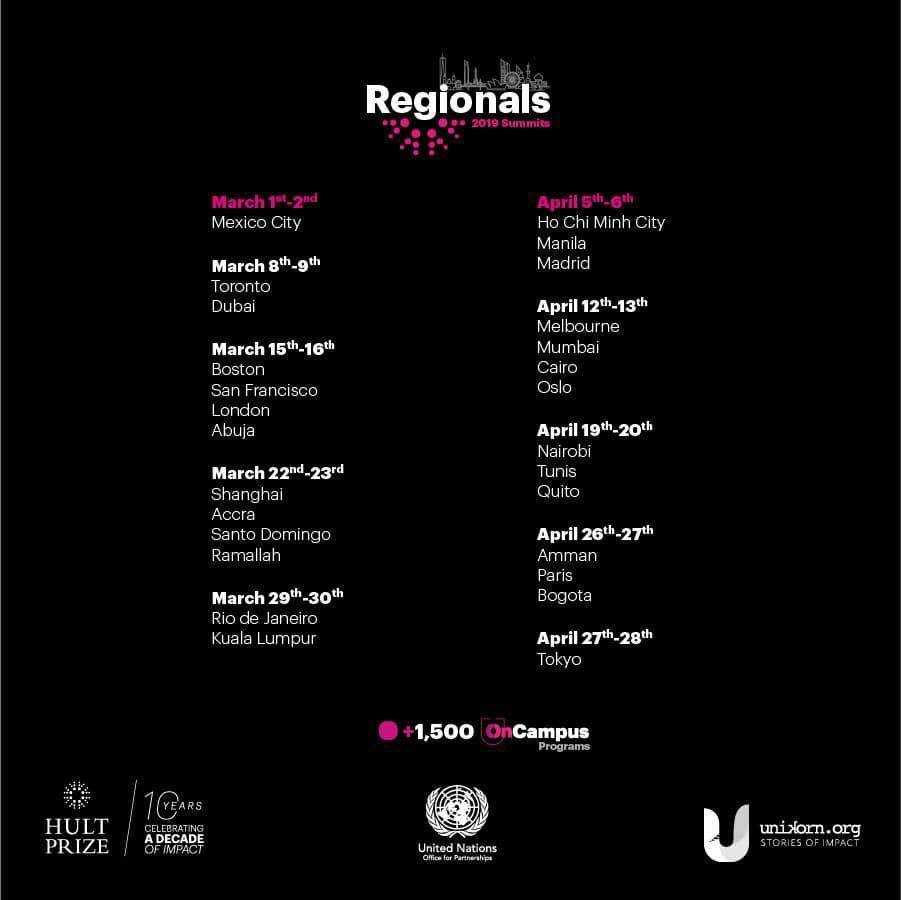 図3:Hult Prize Regional Summitにおける各会場の開催日