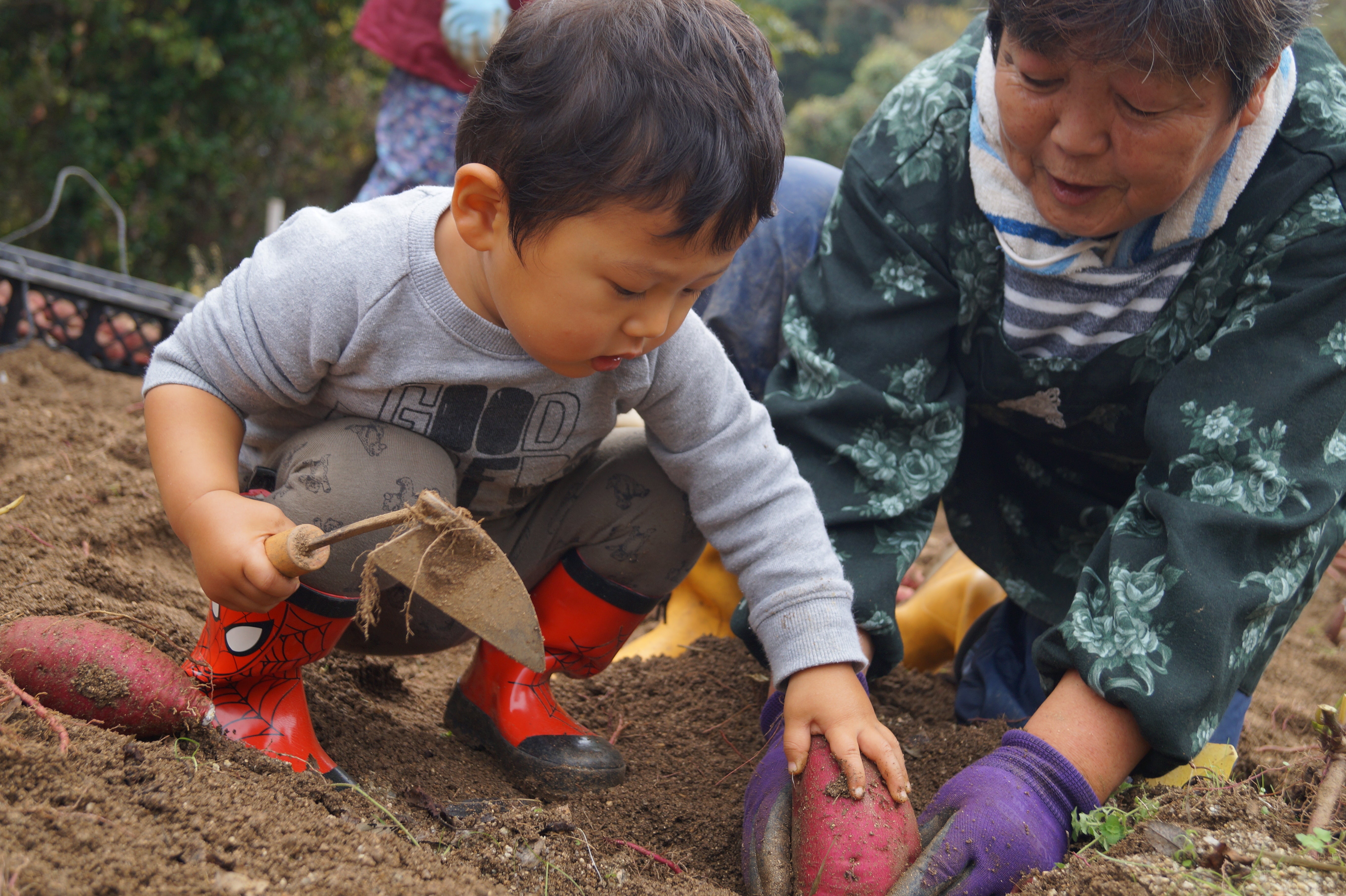 地域で芋掘りイベントを行い、老若男女総勢35名も集まりワイワイ収穫を楽しみました。地域が繋がる機会を増やしていければと考えます。