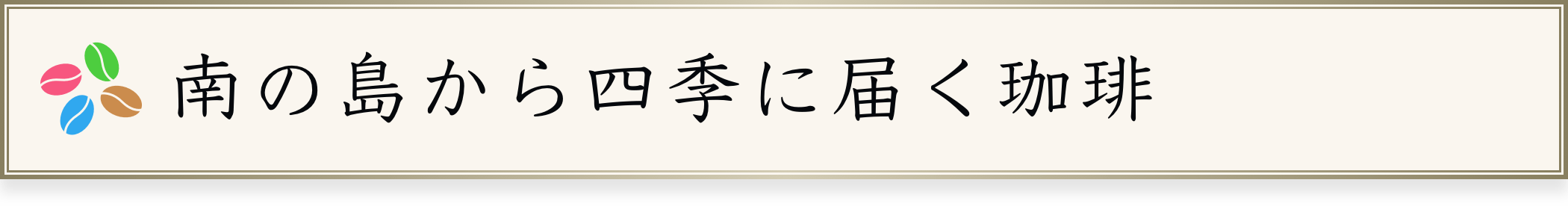 美ら豆珈琲 厳選の珈琲豆を発送直前に焙煎し、年4回(春夏秋冬)お届けします。ちょうど商品到着後が飲み頃になります。全国送料無料でお届けします。