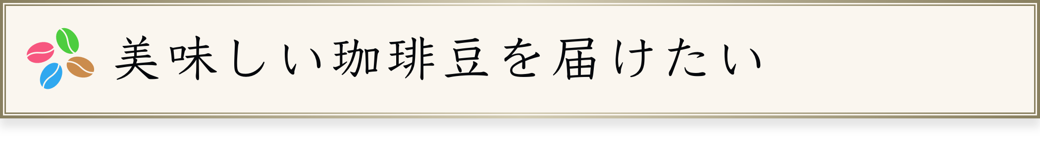 そんなあの時の私のような感動をみなさまにも味わっていただきたく、焙煎したての新鮮な香り高い珈琲を全国へお届けしたいと思っております。