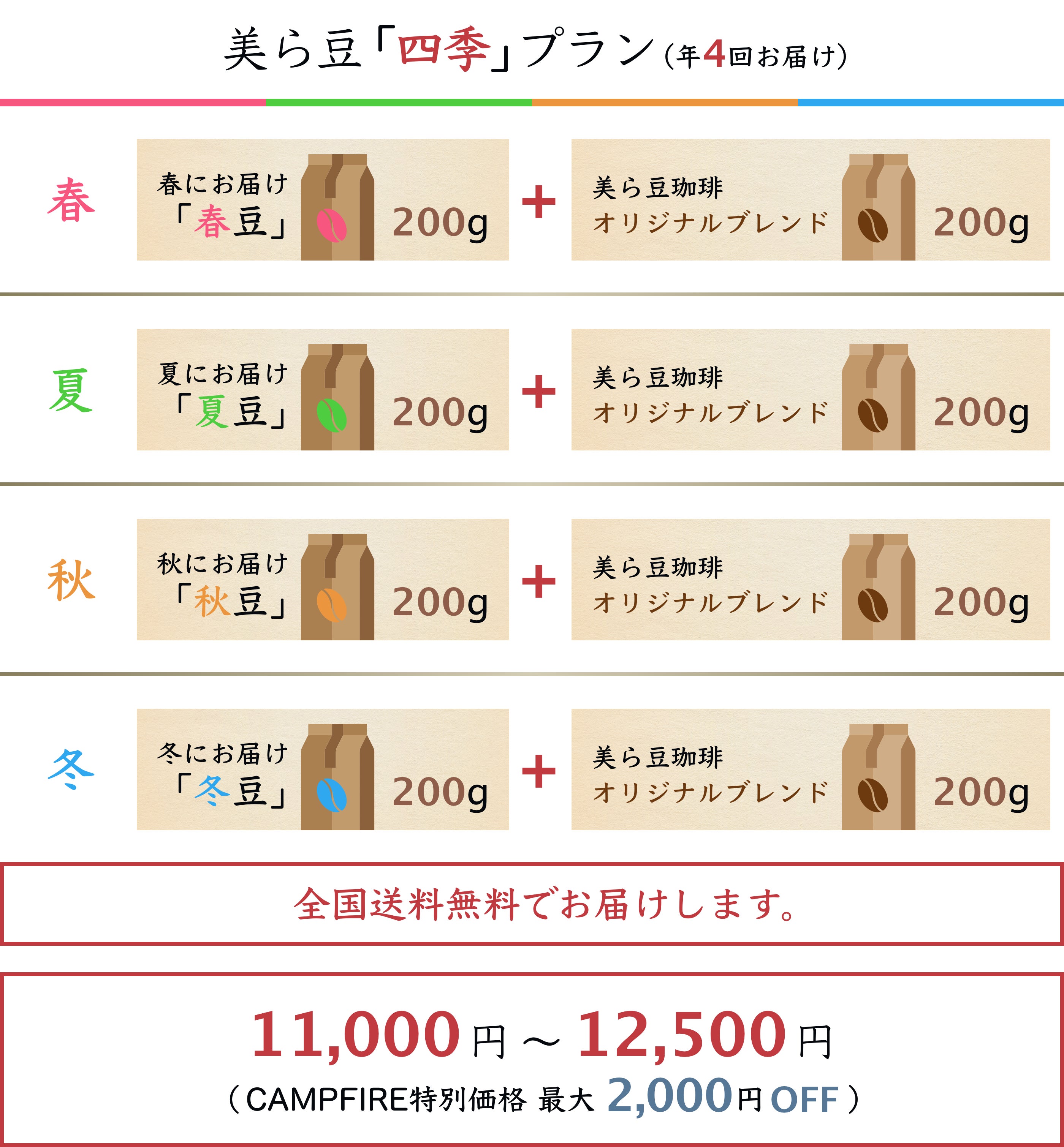 四季の豆+オリジナルブレンドを年4回お届けします