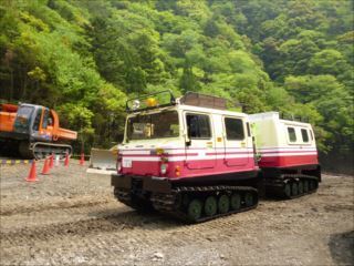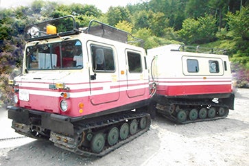 今回活動に使用する車両は無限軌道走行車BV206と言います。この車両はタイヤではなく履帯で走行するため、どんな深い雪でも走行する事が可能です。普通のタイヤの自動車では走行中にスタックしたりしてしまい、逆に北海道の方々に迷惑をかけてしまいます。