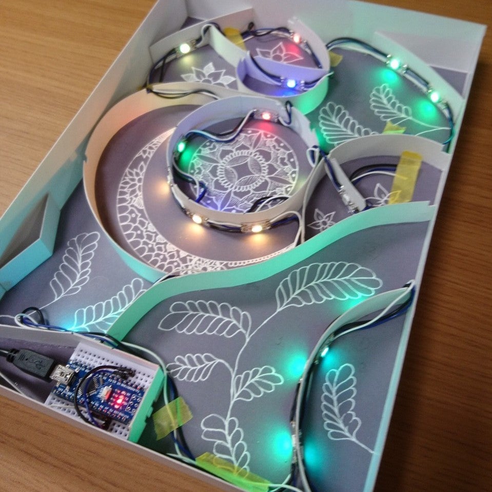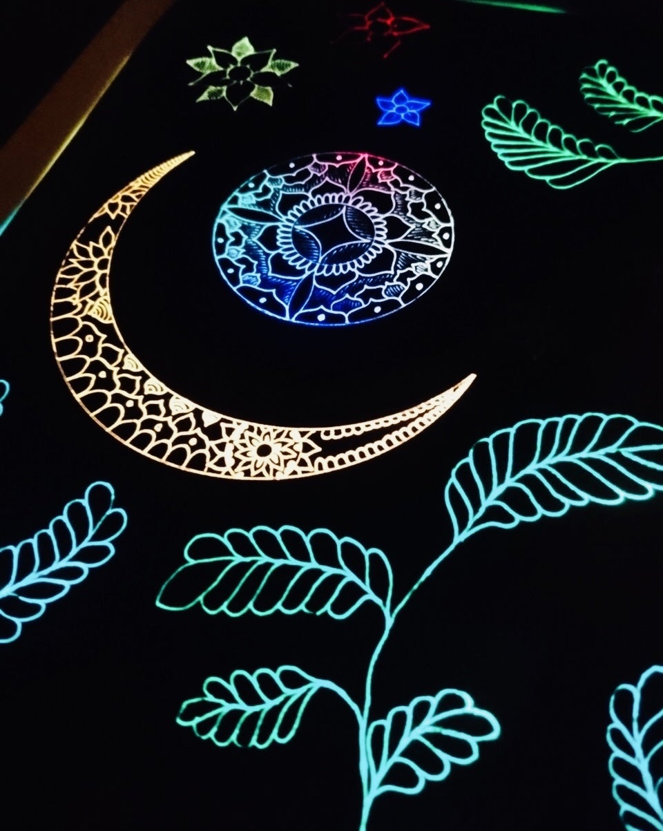 完成版の発光面を使って光る絵本を自宅で制作することができます。