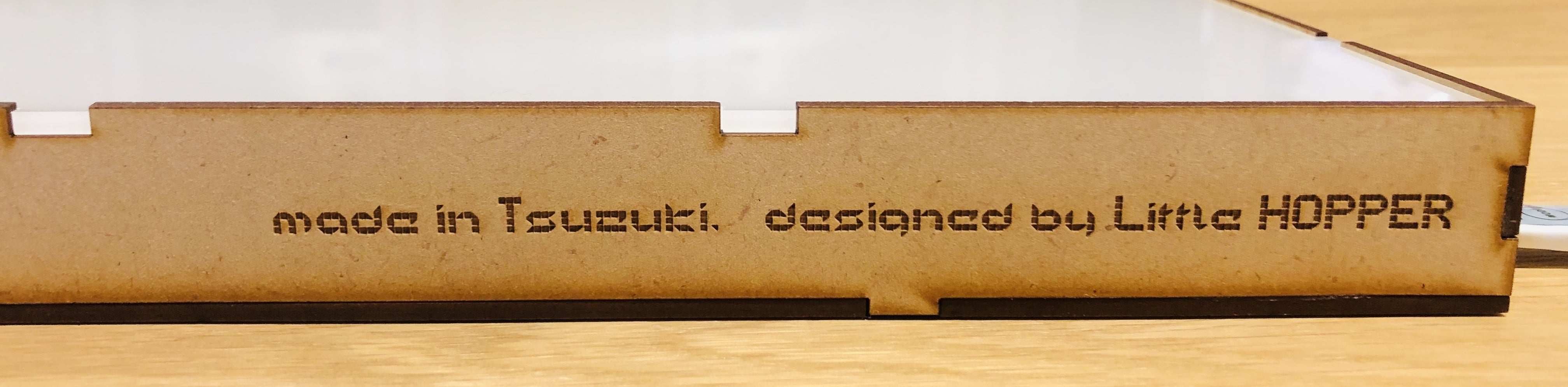 「投影キット」の箱は一枚の板をレーザー加工機で切り出して作る。