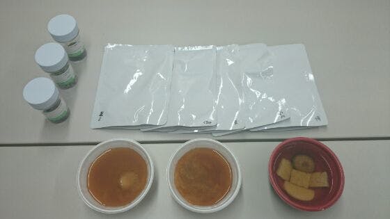 ほかにも、別添するみつばなどのフリーズドライ野菜の味やかたちのチェックや