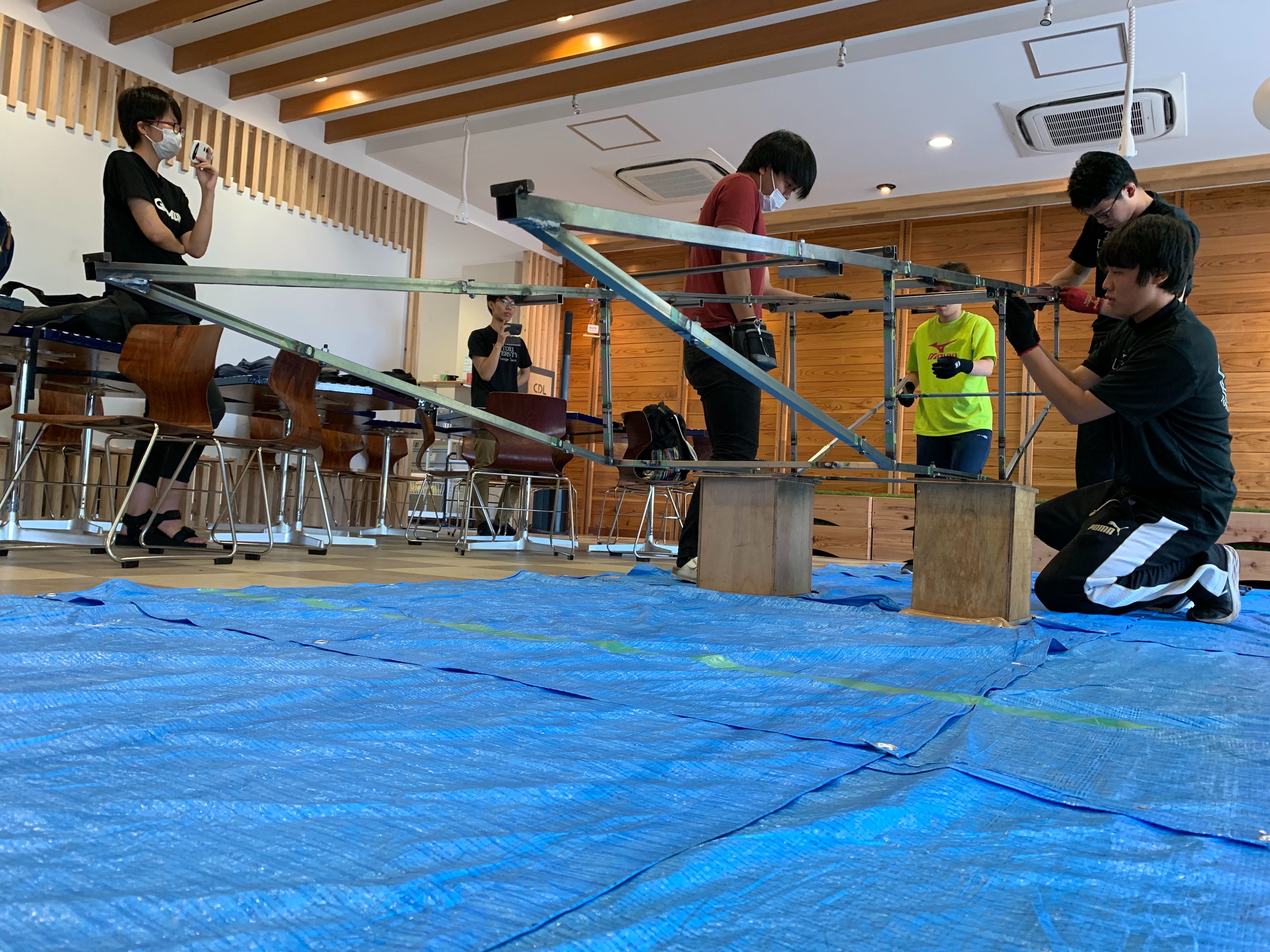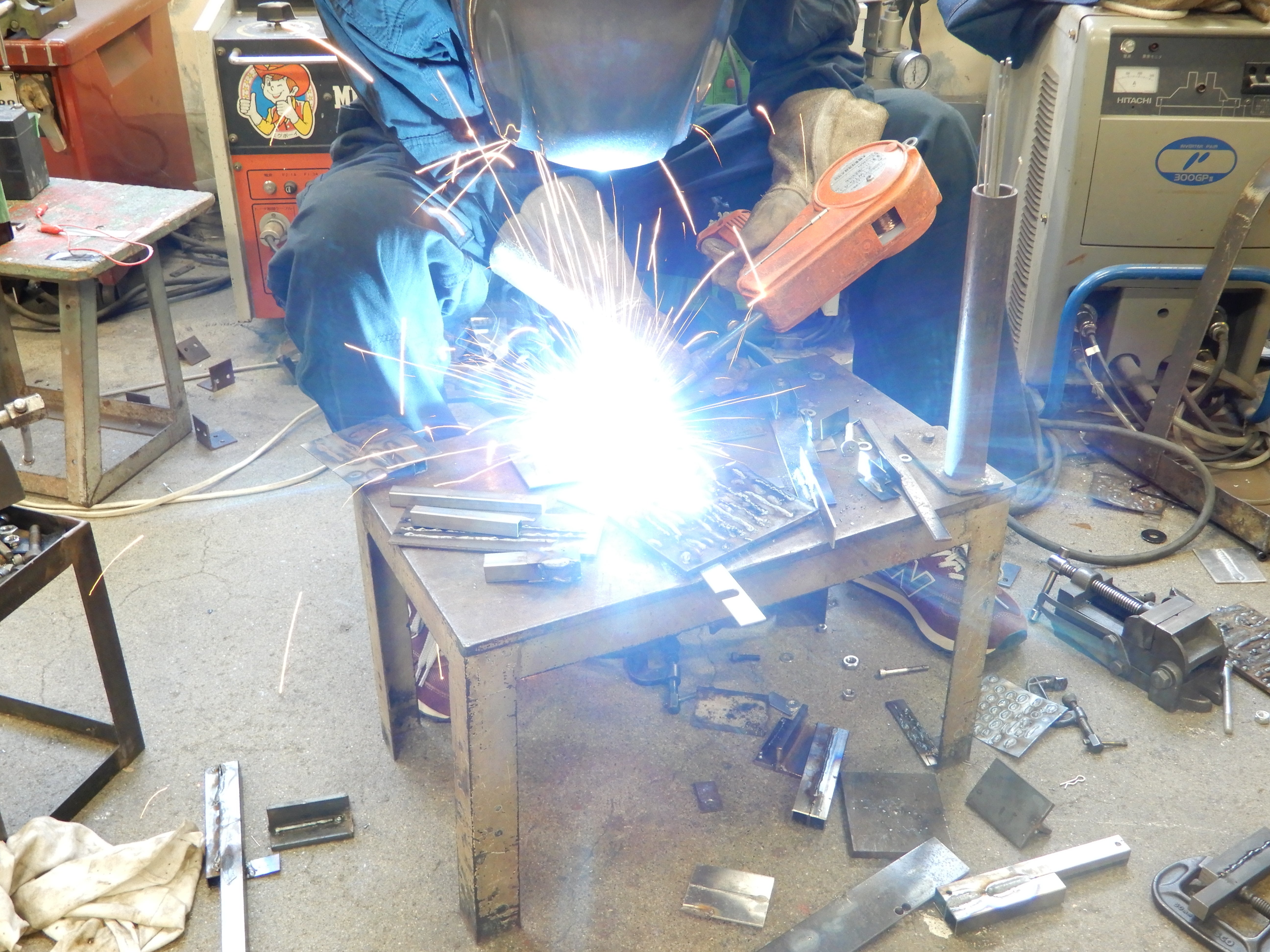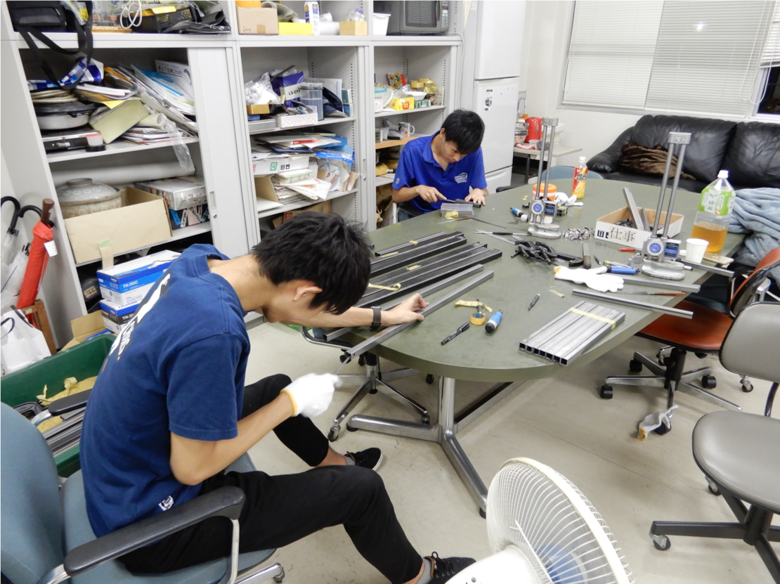 現在、鳥取大学内のものづくり工場という所で、機械加工中&溶接中です。メンバーは、2年生が4人、3年生が1人、4年生が2人、大学院1年が1人、大学院2年の私、合わせて9人で活動中です。