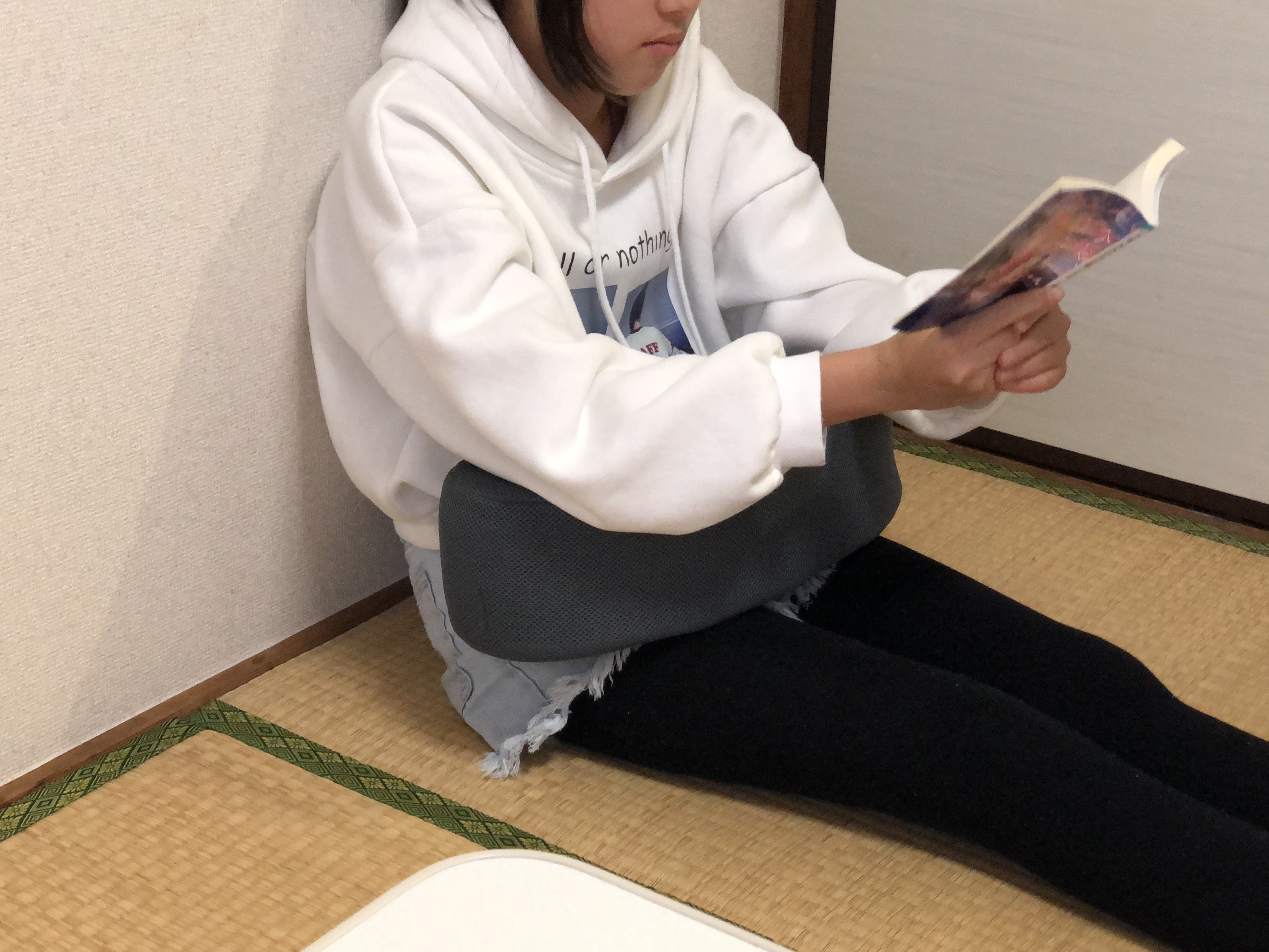 *膝の上に置くと大きい場合、背あてとしてお使いになっても姿勢を整えることができます。体格にかかわらずHiijiiひーじー13で姿勢を整えることができます。