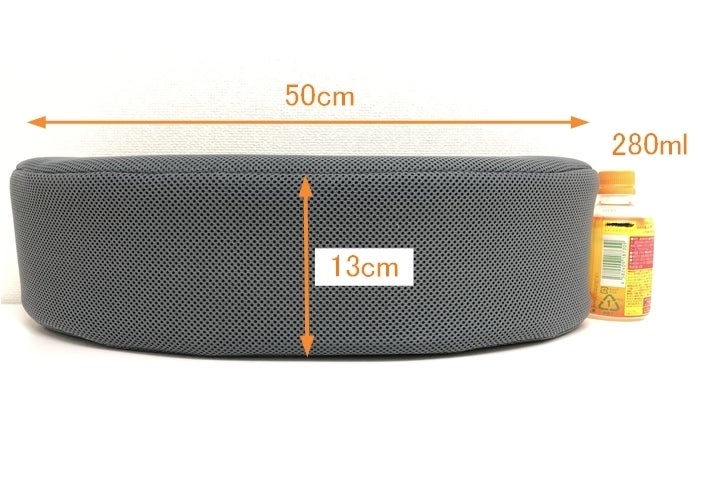 9kgのダンベルをHiijii/ひーじー®と普通のクッションに載せたところ、普通のクッションはかなり沈み込むのに対し、Hiijii/ひーじー®は全く沈み込みません!