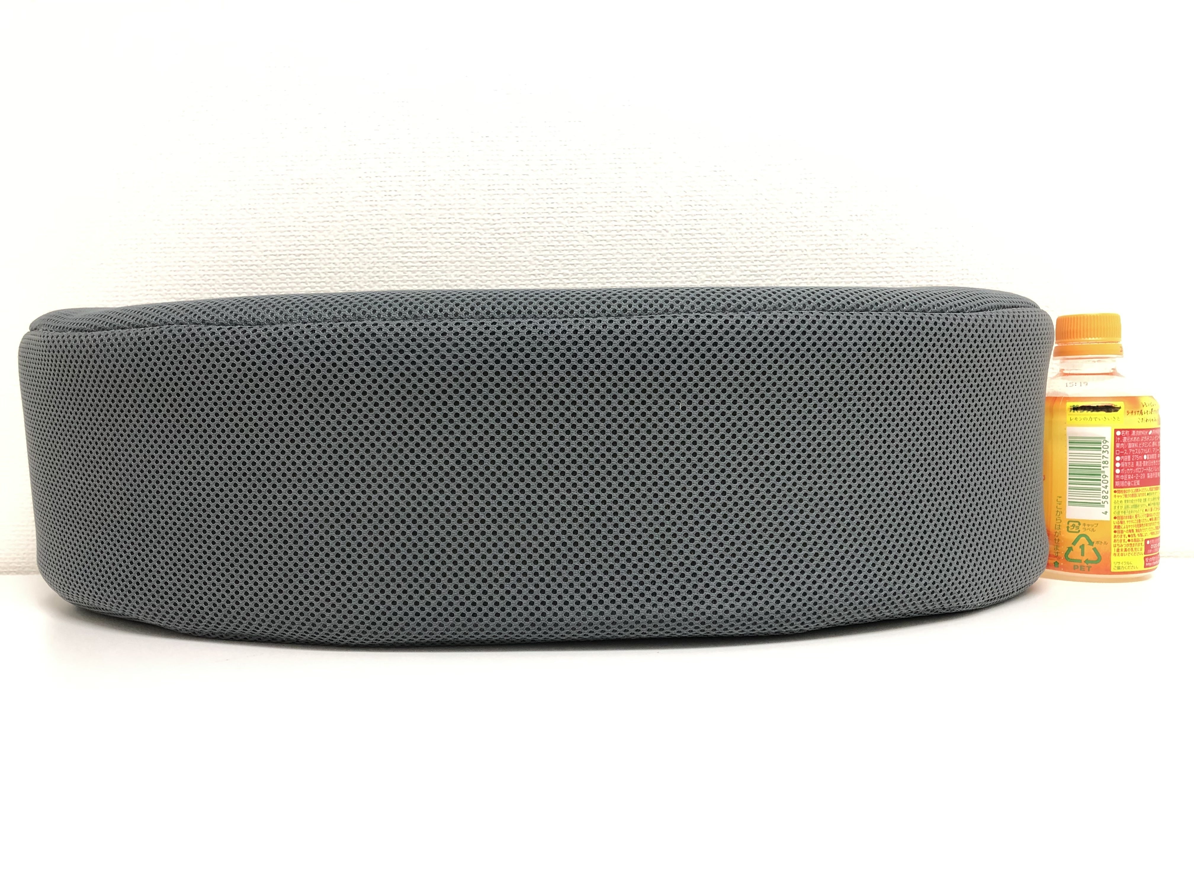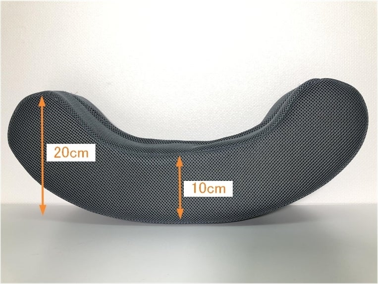 奥行き20cm:厚み10cmの円弧状で体にフィットするフォルム。