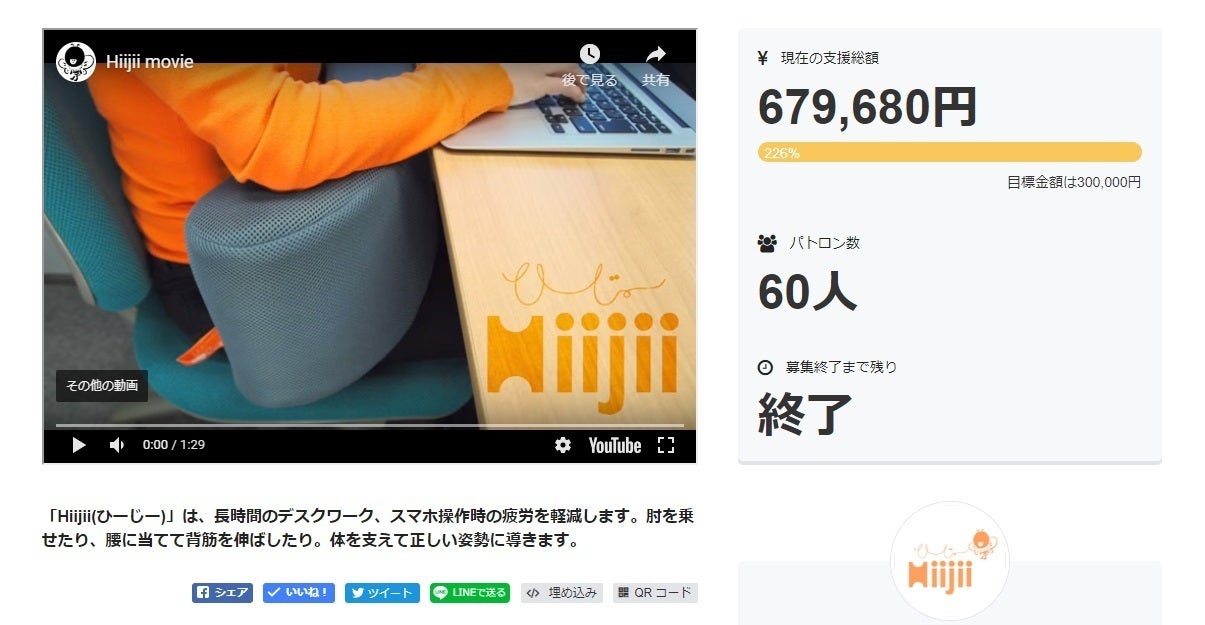 Hiijiiひーじー®は、2017年に226%のご支援を頂いた製品です。