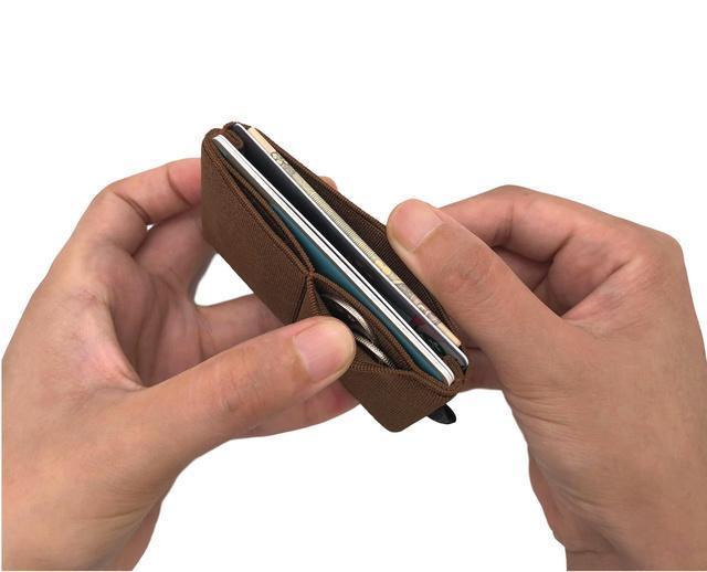 外側のコインポケットはウォレットの両側を握って少し変形することで取り出しがし易くなっております。ただしあくまでミニマルを推奨するウォレットのため、入れ過ぎると落ちやすくなったり、奥に入ったものは少し取り出しにくい場合もありますのでご留意ください。