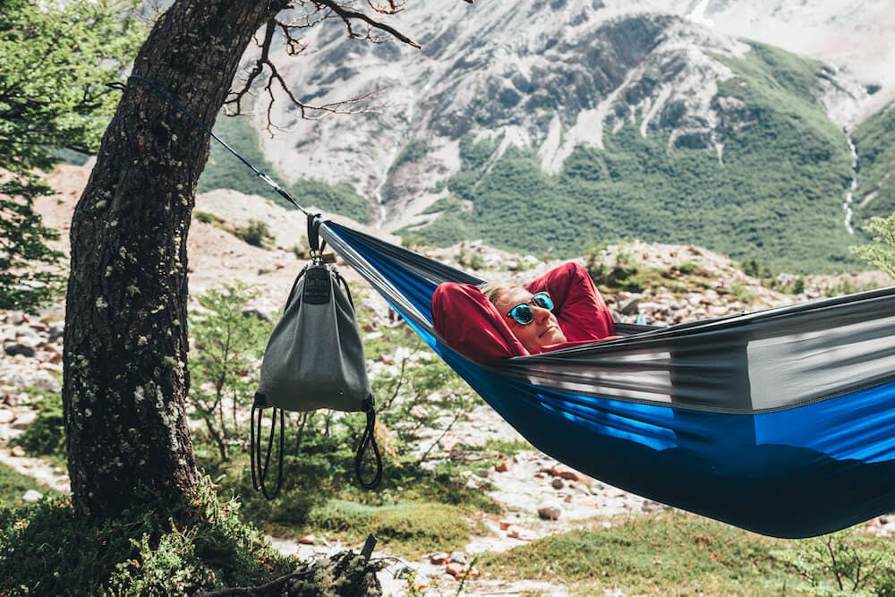 Flak Sack SPORT(フラックサックスポーツ)を固定物にくくりつけ、ロックをするだけ。