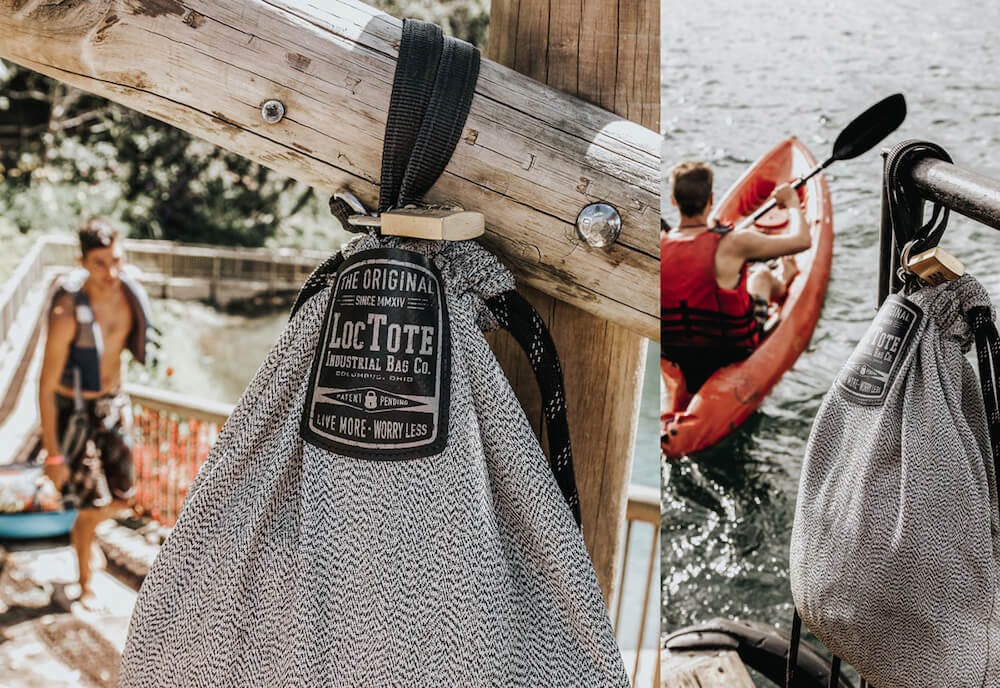 貴重品を入れたFlak Sack SPORTを、固定物にくくりつけロックをします。それだけであなたは荷物の心配から開放されます!