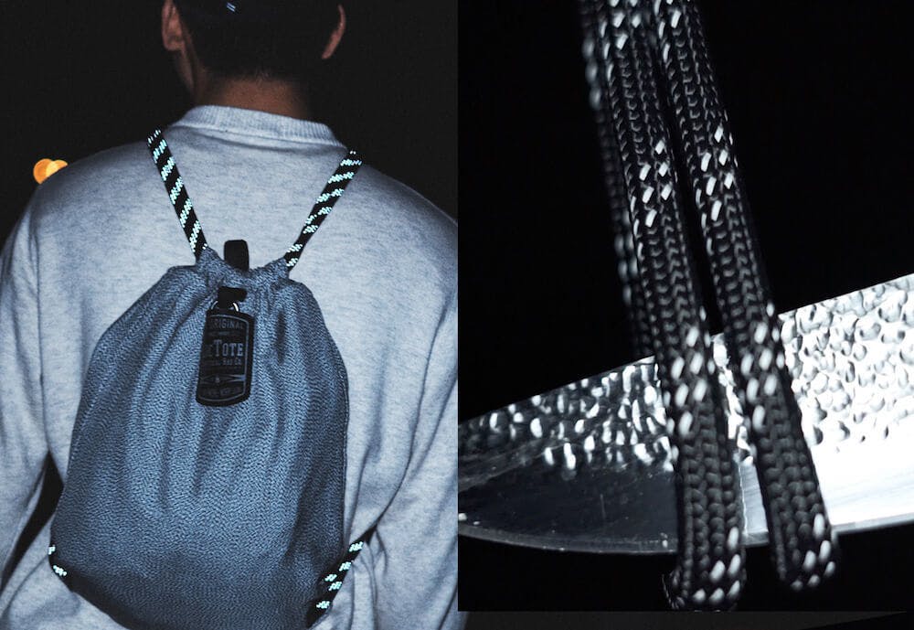 背負うためのロープ部分も同様に、防刃性を持つ頑丈な超高分子量ポリエチレン製です。簡単に切ることはできません。さらに夜間に反射する素材とすることで、より安全性・防犯性を高めています。