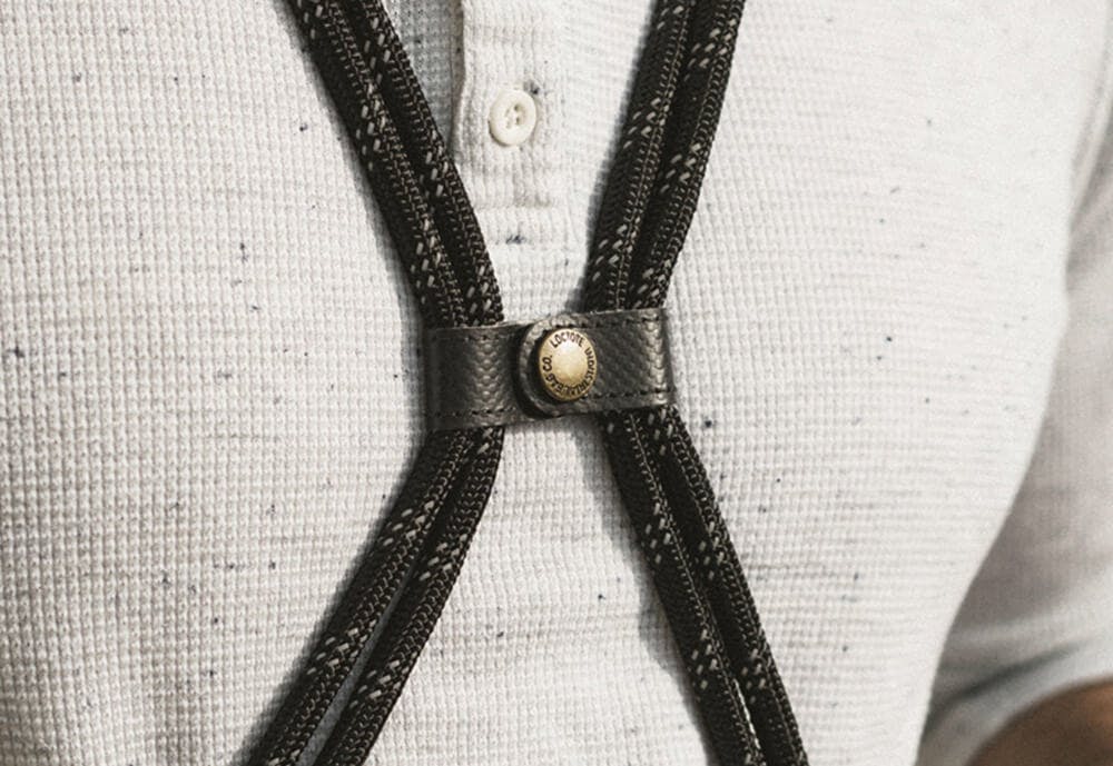 背負うためのロープには胸部固定ストラップが付属しています。このストラップを金属製ホックでとめることにより、Flak Sack SPORTをしっかり安定させより楽に背負うことができます。またひったくり等にあっても荷物を簡単に奪われません。