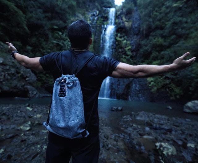 防水仕様だから、雨が降っても滝のそばで水しぶきがかかっても大丈夫。