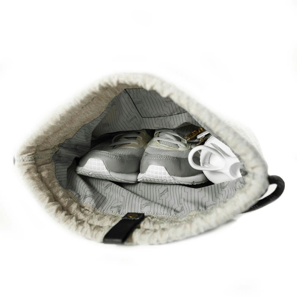 トレーニングシューズも入ります。バッグの内装色はすべて同じライトグレー色です。