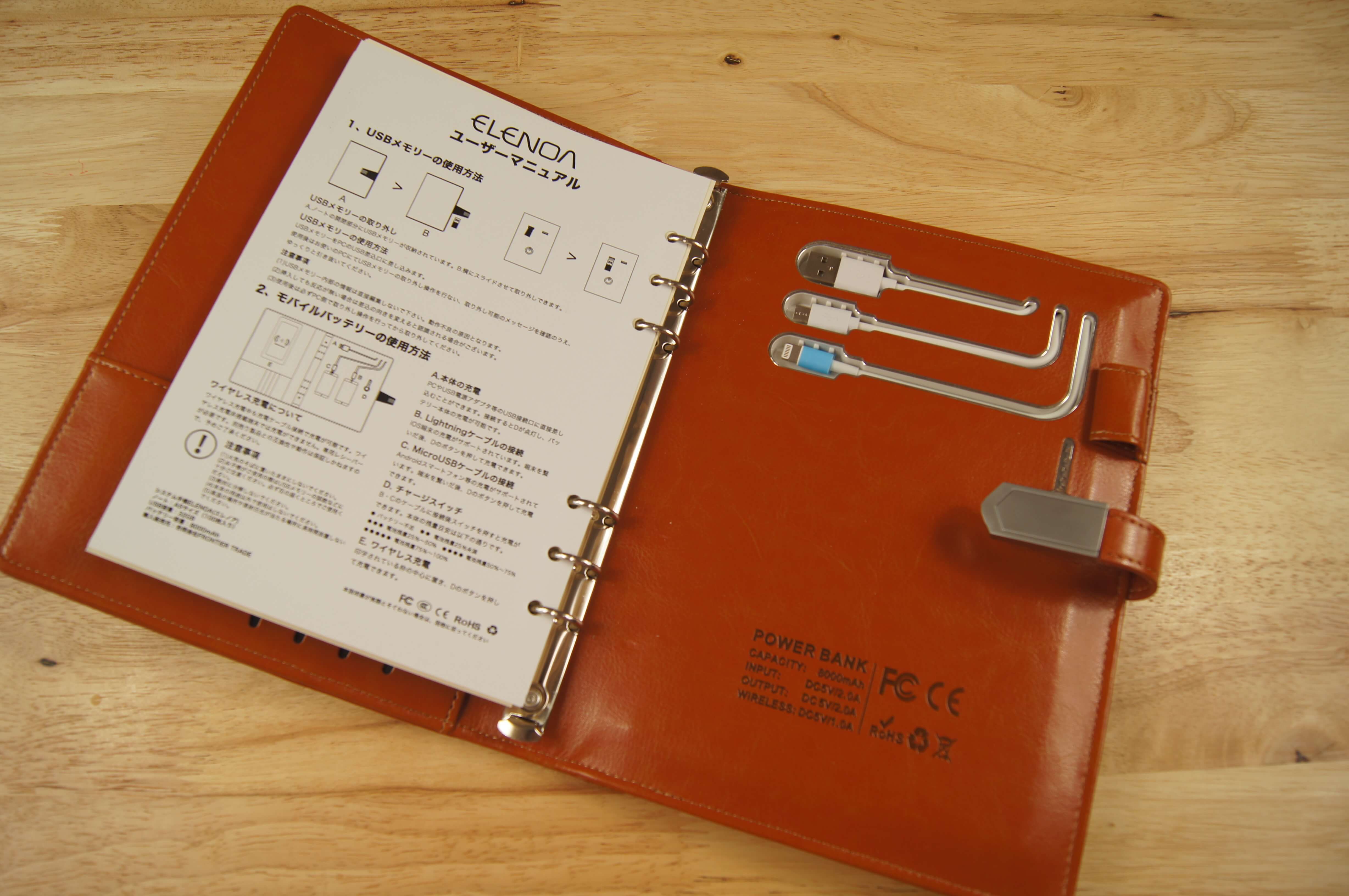 しかし、ELENOA(Ver.2.0)さえ持っていれば大丈夫。ELENOAはモバイルバッテリー内蔵のシステム手帳です。