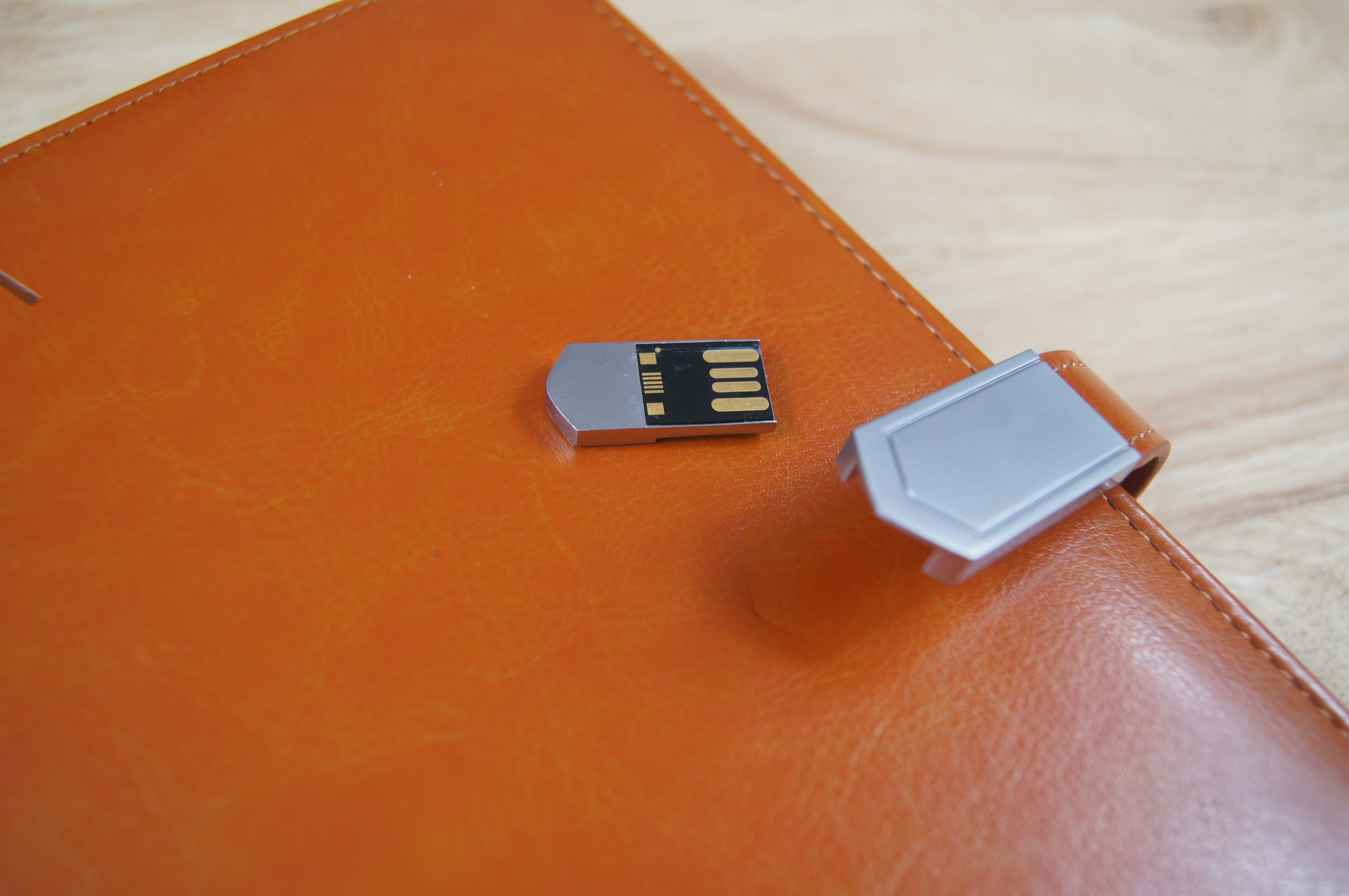 USBメモリーは手帳の開閉部分に付属しているので、使う時だけ取り外し、使わないときは収納しておくことができます。USBメモリーの容量は32GBとなっています。