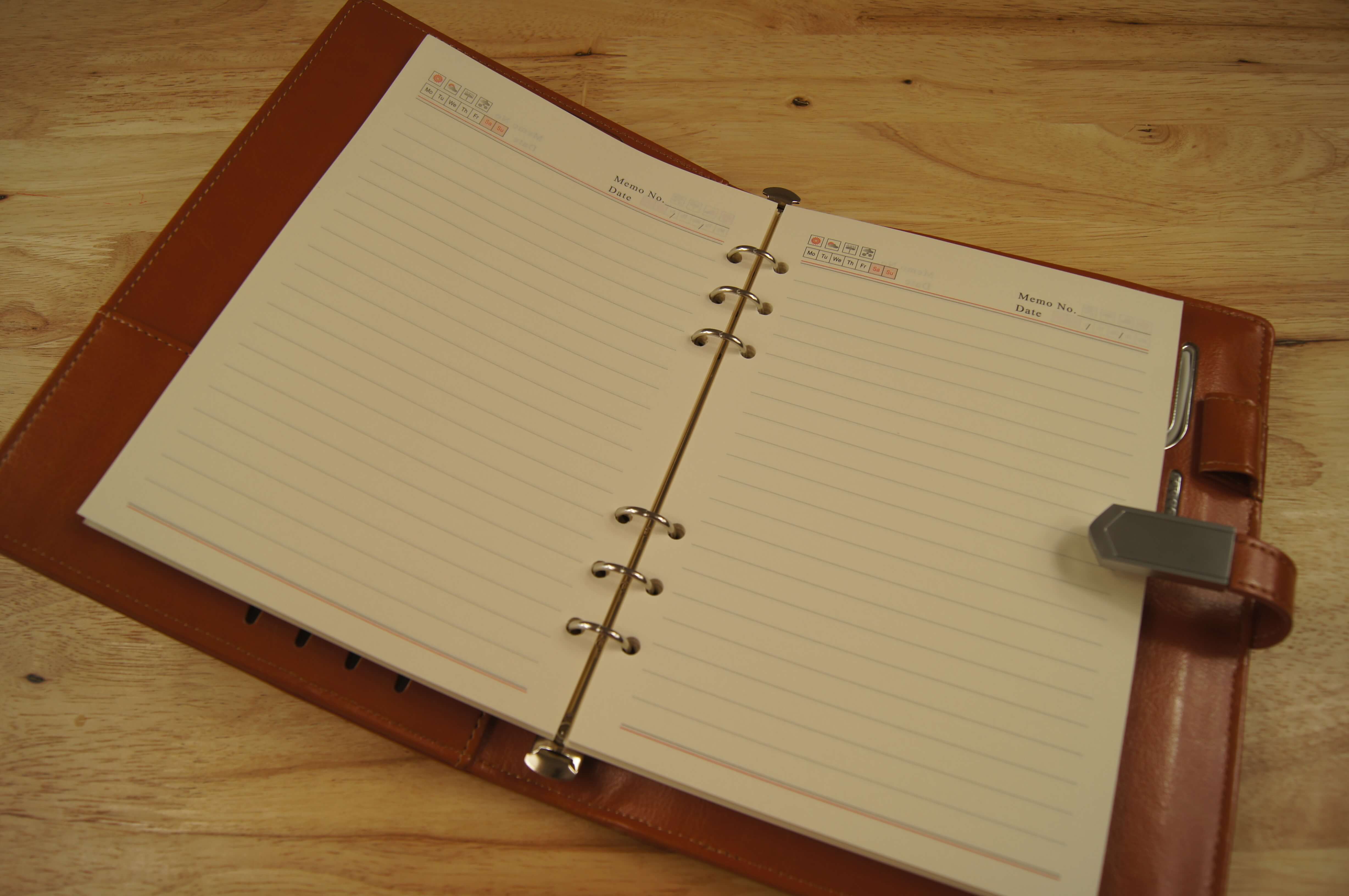 ELENOAはあなたのアイデア、大事な商談のメモ、タスク管理を記入するシステム手帳。A5サイズのバインダー式で、リフィルには自由に書き込むことが出来ます。罫線の入ったリフィルを約100枚付属しておりますが、使い方によってカスタマイズが可能です。