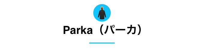 Parka(パーカ)は、スノーボード、スキーなどのアウトドア・スポーツウェアとして、また、寒い日のタウンウェアとしても活躍します。