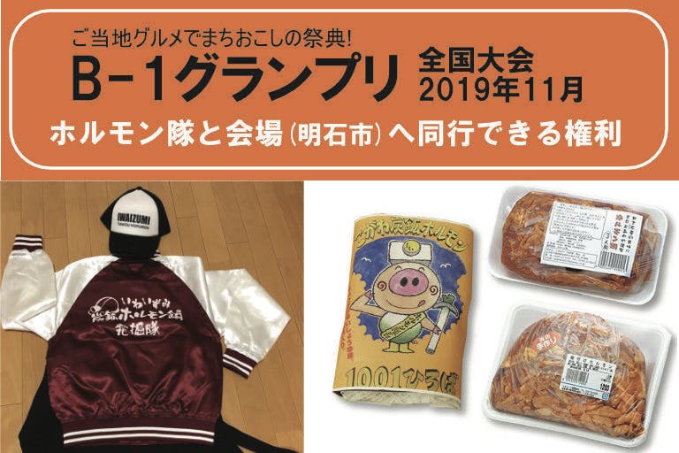 11月に兵庫県明石市で開催されるB-1グランプリに同行できる権利 + ホルモン隊帽子&ジャンパー + ホルモン鍋食べ比べセット