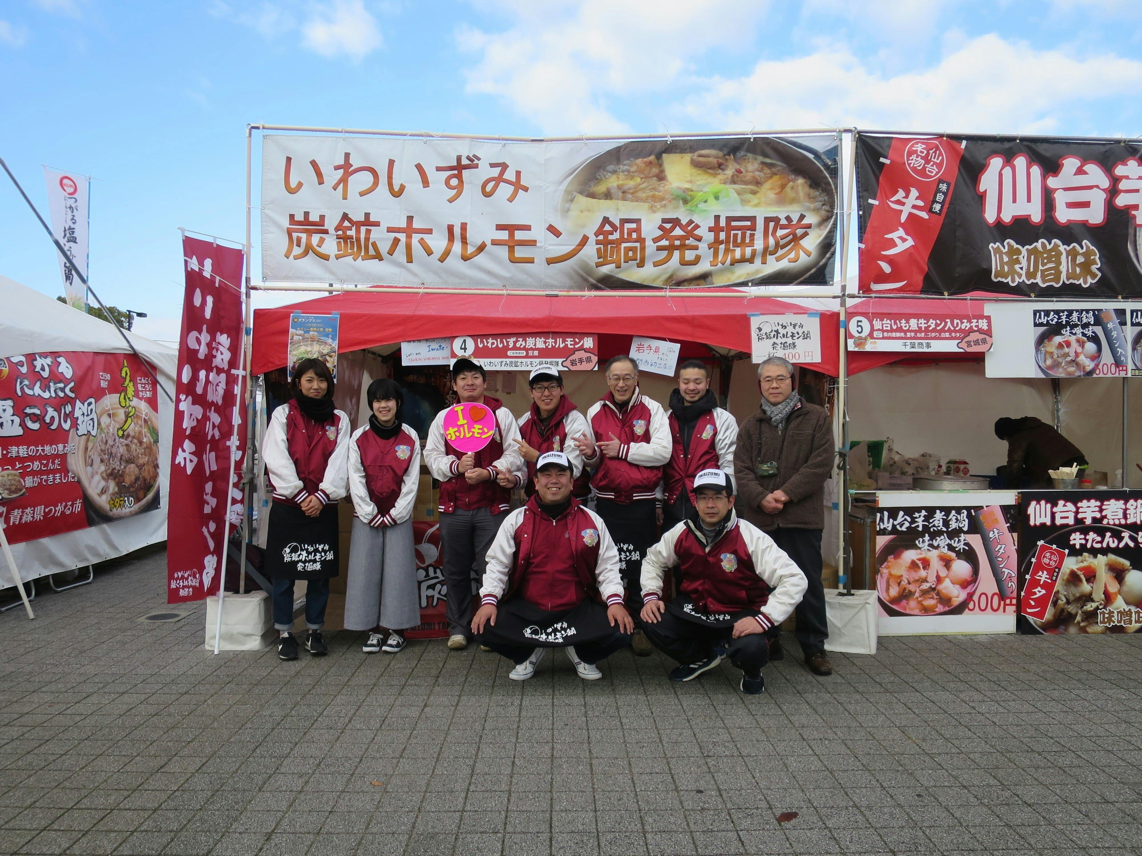 いわいずみ炭鉱ホルモン鍋発掘隊は平成28年6月に発足後、現在まで県内を中心に宣伝活動を続けている他、「ニッポン全国鍋グランプリ」「昭島フーズグランプリ」といった首都圏で開催されるイベントにも定期的に参加し地道にPR活動を継続しています。最近では2月に東京新木場で催されたYOSHIROCKフェスティバルに出店してきました。