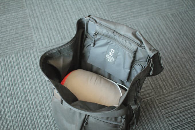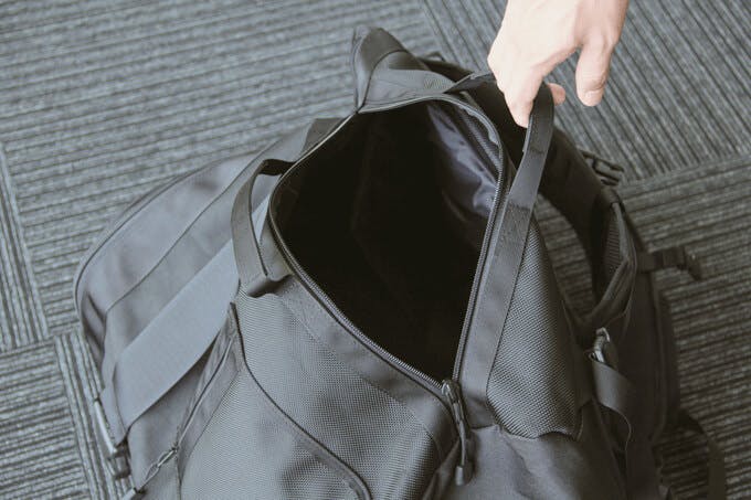 バッグ上部のメインアクセスは2つのジップで大きく開く構造で、大きな荷物の出し入れにも配慮しました。