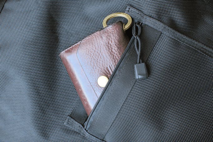 カバン前面の下部には小物を入れておけるポケットを設置。小型の財布はすっぽり入る大きさです。