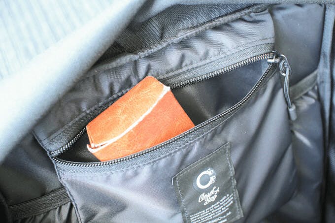 カバン内部のメインアクセス付近には、小物や貴重品を入れておけるポケットが付属しています。メガネケースなどある程度厚みのあるものでも収納可能です。