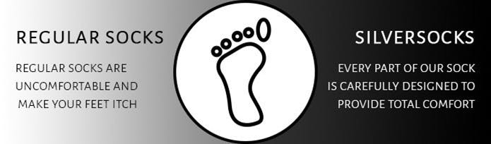 「SilverSocks」はプレミアムシルクの感触で履き心地が滑らかです。ソックスがチクチクしてイライラすることはありません。