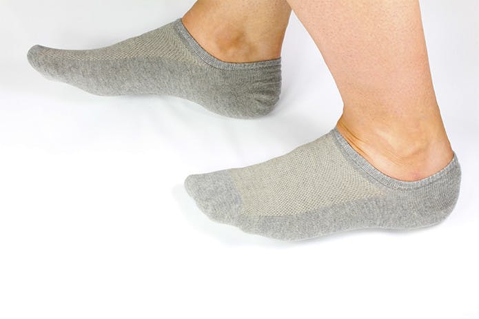 ほとんどのソックスは足首の上を締め付けるデザインなので、足首の血行が悪くなる可能性があります。「SilverSocks」は写真の通り、ソックスのゴムが足首の下にくるようにデザインされているので、足首の血管を締め付けることがなく、血液循環を妨げません。足の血行が悪くなると、全身の血液循環にも悪影響が出るので、見逃せないポイントです。また、ソックス丈が短いので、通常のソックスのように脛からずり落ちてルーズな感じになることもありません。