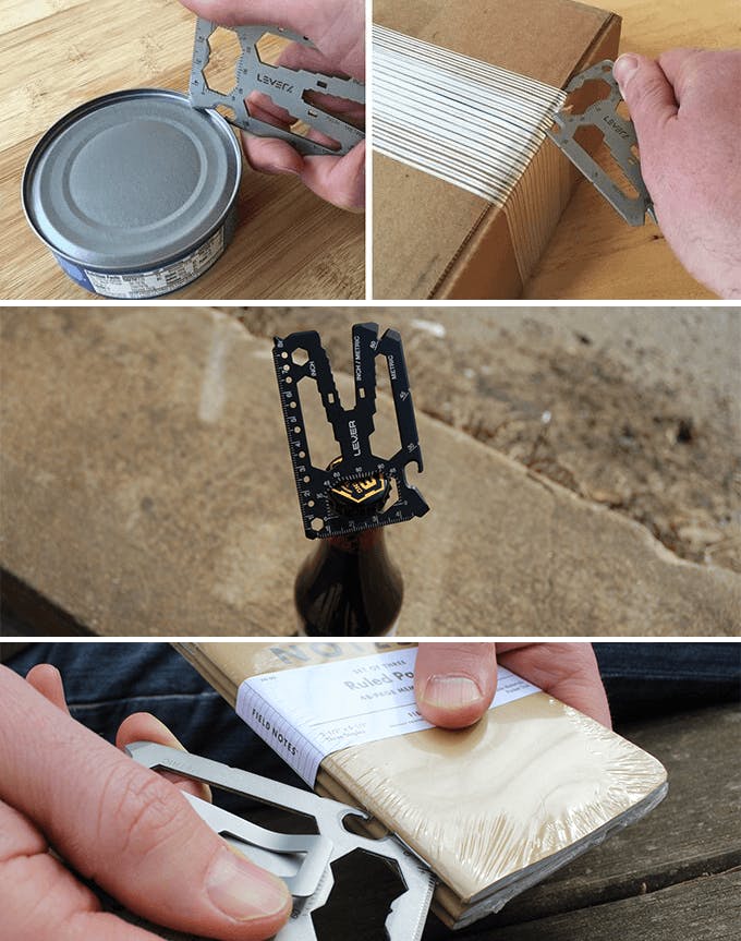 ミニマリスを自負している方は、マネークリップとして活用してみてください。最大6枚のクレジットカード(及び同等の厚みの現金)を収納できます。マネークリップへの変更は一切のツールを必要とせず、手だけで数秒で切り替え可能です。そしてなんと、栓抜きはクレジットカードを挟んでいる状態でも動作します。